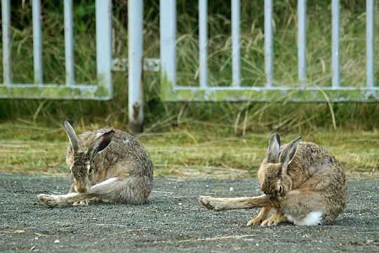 20.06.2008, Freitagmorgen, Weitsprunganlage der 83. Schule, Susi und Bertram Susi hat endlich mal wieder Besuch von einem Hasen (Bertram), nach mehr als einer Woche. Bei ihr bahnt sich der nächste "heiße" Tag an - was wohl der Grund für Bertrams Interesse an ihr sein wird. Seit Dienstag ist Toni wieder da. Er wird eben langsam erwachsen und ist nicht mehr nur mit Susi, Moni und Susann zufrieden. Fünf Tage war er fort - ich hatte mir Sorgen gemacht, denn so was ist zum ersten Mal passiert. |