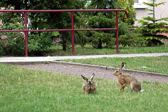 16.07.2008, Mittwochmorgen (1), Förderschule, neue Häsin (l.) und neuer Hase Heute wäre eigentlich Susann mit ihrem "heißen" Tag dran gewesen; aber weder heute noch morgen sollte sich bei ihr ein Hase blicken lassen. Stattdessen wird die neue Häsin belagert - allerdings nur von dem neuen Hasen und von Bertram; Toni hatte ja noch nie so großes Interesse für sie gezeigt. Nach der Regel (37 bis 39 Tage) wäre sie erst in einer Woche dran, aber das letzte Mal ist bei ihr ja aus irgendeinem Grund ausgefallen ... und so ist ihre Regel wohl etwas durcheinandergeraten. |