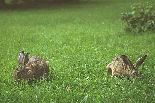 29.07.2008, Dienstagabend, Wiese an der Schönauer Straße, Moni (l.) und Toni Endlich ist Toni mal wieder da; er ist kaum noch zu sehen, so dass ich mir immer Sorgen mache, ob er überhaupt noch lebt. Übermorgen hat Susi ihren nächsten "heißen" Tag - vielleicht zieht ihn ja das in unsere Gegend? ... hatte ich gedacht ... Mittwochmorgen: Toni und der neue Hase bemühen sich um Susann. Susanns "heißer" Tag vor zwei Wochen war ausgefallen - nun ist er heute. Vor zwei Wochen das mit der neuen Häsin, jetzt Susann - momentan scheint hier etwas durcheinander- geraten zu sein. |