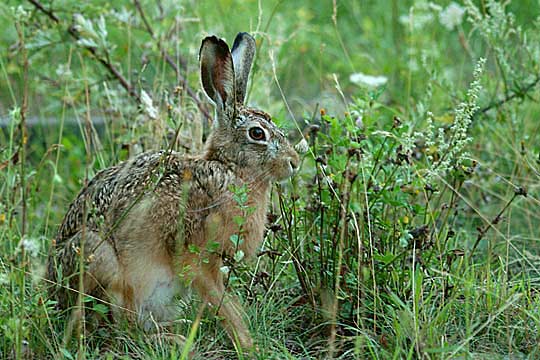 31.07.2008, Donnerstagabend, Parkplatz vor unserm Viertel, Susann Susann hat sich für ihr Revier mittlerweile die belebteste Gegend des Hasenbezirks ausgesucht: zwischen Lützner Straße und unserm Viertel (einschließlich diesem). Am liebsten hält sie sich in hohem Gras auf - wie hier am Rande des Parkplatzes zwischen Bushaltestelle und unserm Wohnviertel. Dies wird wohl das letzte Tageslichtfoto von ihr für dieses Jahr sein, denn Susann ist meistens extrem nervös und traut sich im Hellen nicht mehr so ins Freie. |