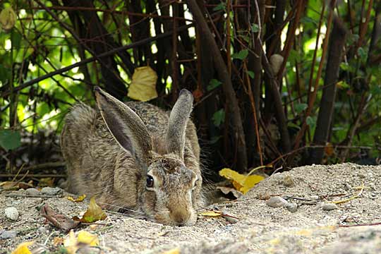 14.08.2008, Donnerstagabend, Gelände der 83. Schule, Susi Susis 5. Versuch in diesem Jahr, Hasen aufzuziehen, ist auch gescheitert. Seit dem Dienstagabend läuft sie nicht mehr zu ihrem Wurplatz. Auch die anderen Häsinnen haben bisher keinen Erfolg gehabt. In diesem Jahr haben sich die Bedingungen sehr verschlechtert, da zwei neue, sehr aktive Katzen zu den beiden bisher immer zu sehenden dazugekommen sind; und dann gibt es auch nicht mehr so viele Versteckmöglichkeiten: wegen abgesägten Sträuchern und mit Rindenmulch "versiegeltem" Boden. |