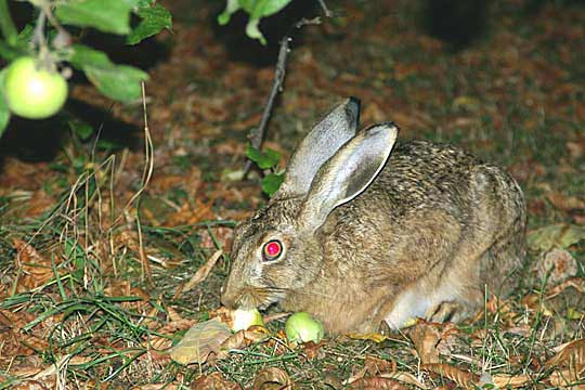 17.08.2008, Sonntagmorgen, Wiese an der Schönauer Straße, Moni Die Äpfel bieten mal eine angenehme Abwechslung im Nahrungsangebot für unsere Hasen. Susi frisst so was aber nicht mehr; ihr genügen Wein und Banane - die sie von mir bekommt. |